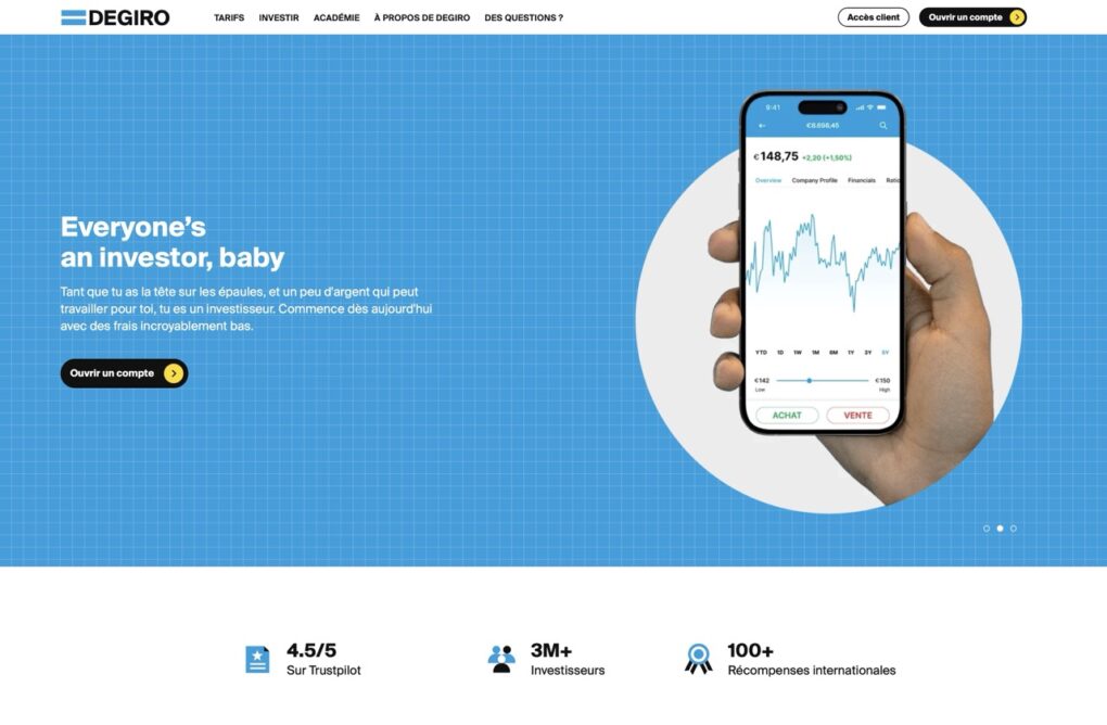 Degiro est l’un des courtiers les plus populaires en Europe depuis 2009. Avec plus de 2,6 millions d’utilisateurs et des frais compétitifs, cette plateforme néerlandaise s’est imposée comme une référence pour investir en Bourse sur un Compte-Titres Ordinaire (CTO).